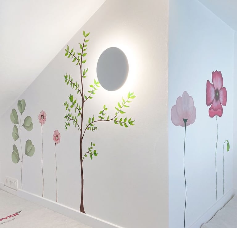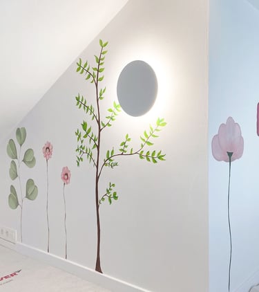 Chaque projet présenté ici est le fruit d’une rencontre, d’une intention et d’un dialogue entre un lieu et une création. Qu’il s’agisse de peintures murales, de vitrines ou de supports artistiques plus intimistes, ces réalisations témoignent d’un travail sur mesure, pensé pour révéler l’identité de chaque espace et raconter une histoire visuelle unique.